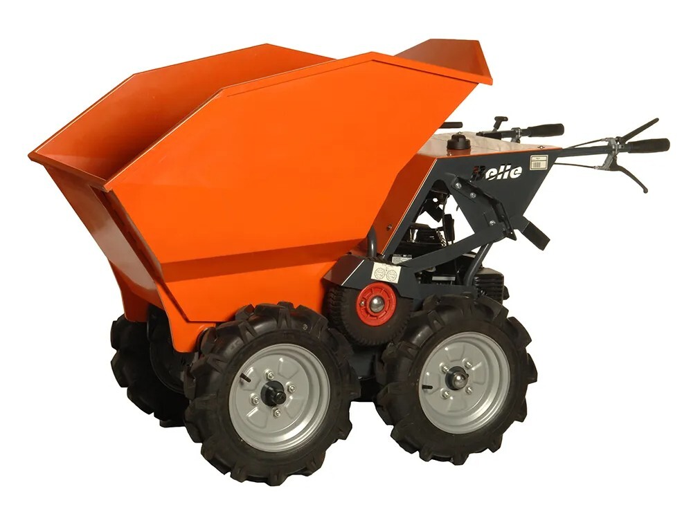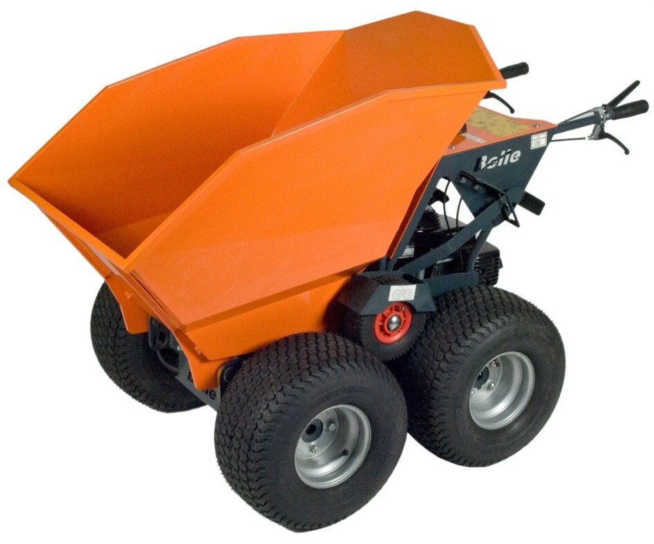 - Handgeführter Minidumper mit Kippmechanismus, für Nutzlasten bis 300 kg.